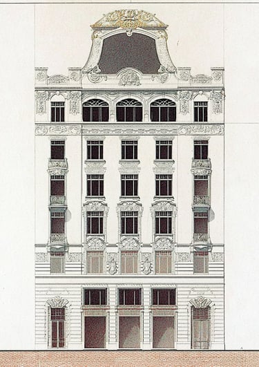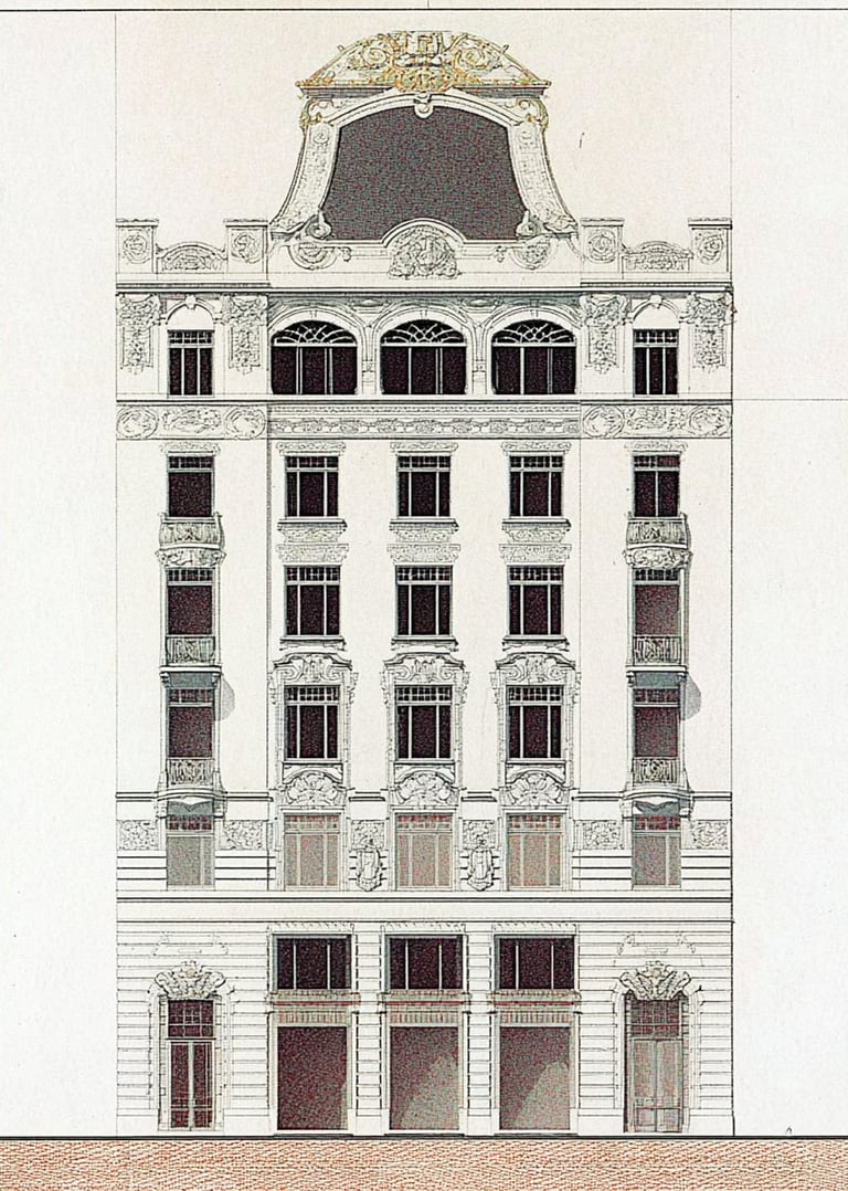 • Loggias, balconies, and recessed bays — subtle depth variations that added shadow, hierarchy, and a sculptural quality to the street façade.